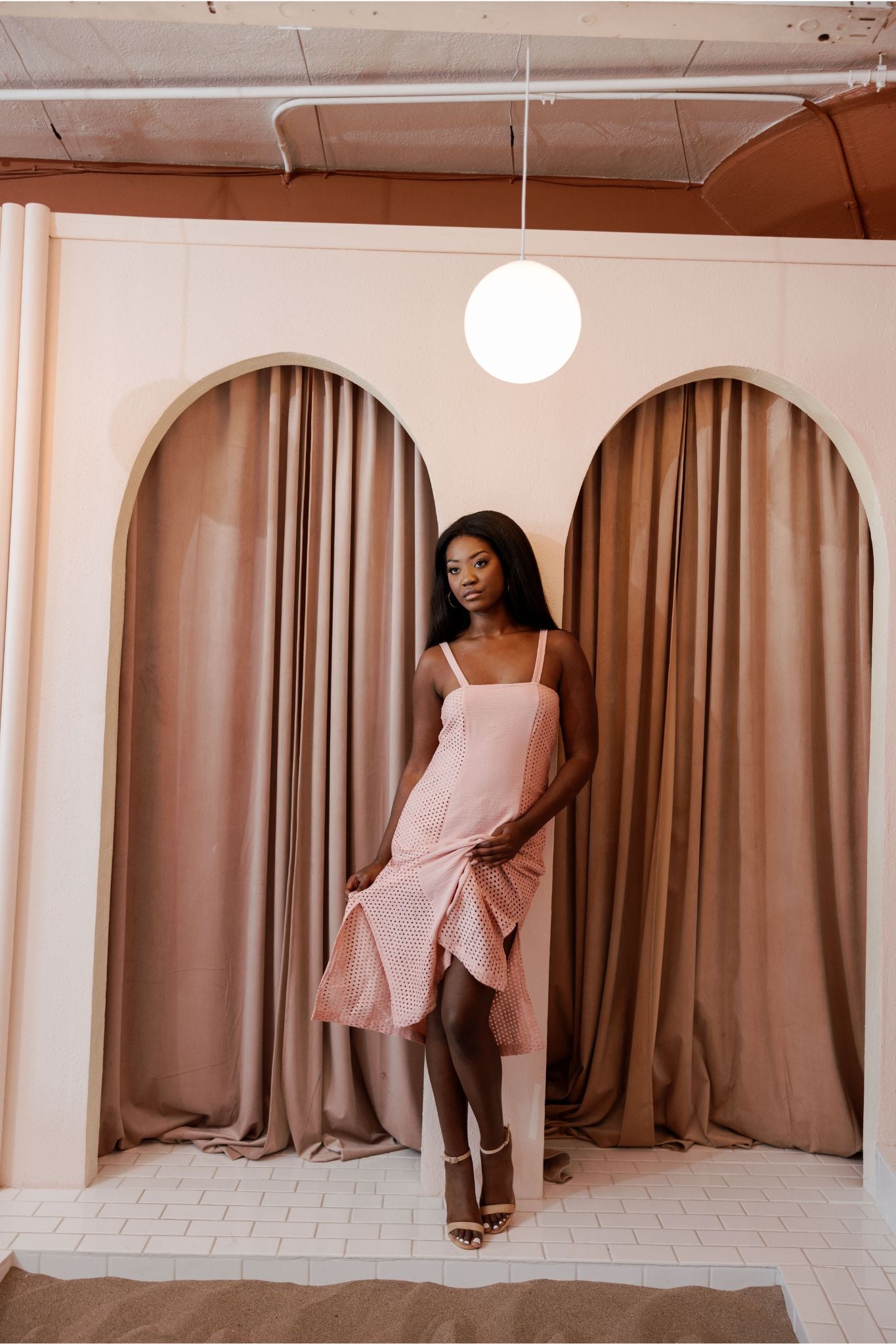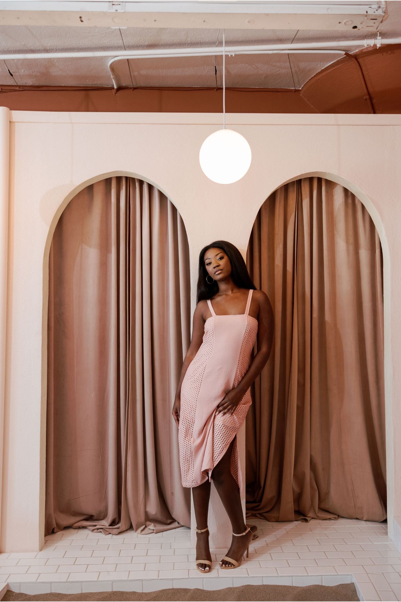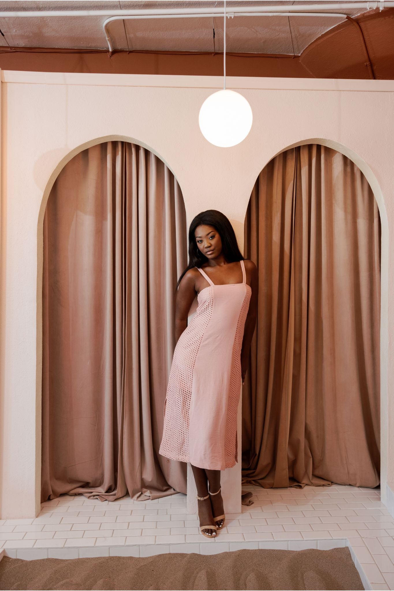 Women's Casual Resort Wear Tank Dress Mid Length with Cut Out Design
