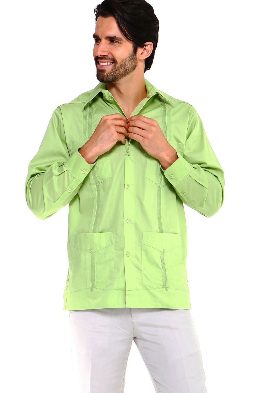 • Collar: Traditional guayabera placket