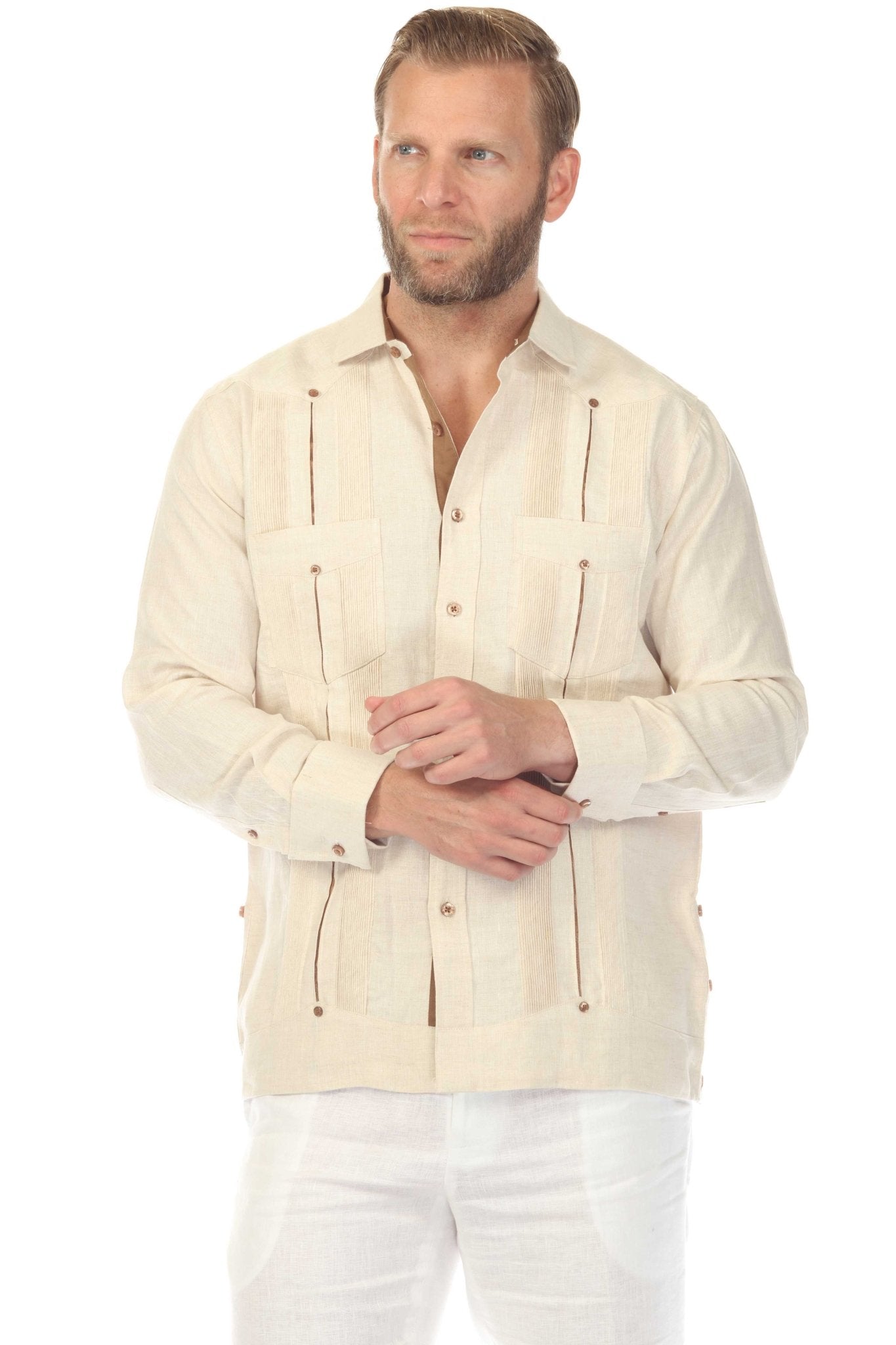 Two-Pocket Guayamisa Design – Classic Latin silhouette with functional chest pockets