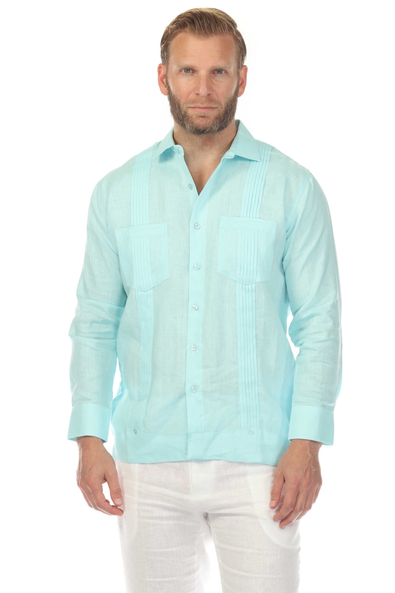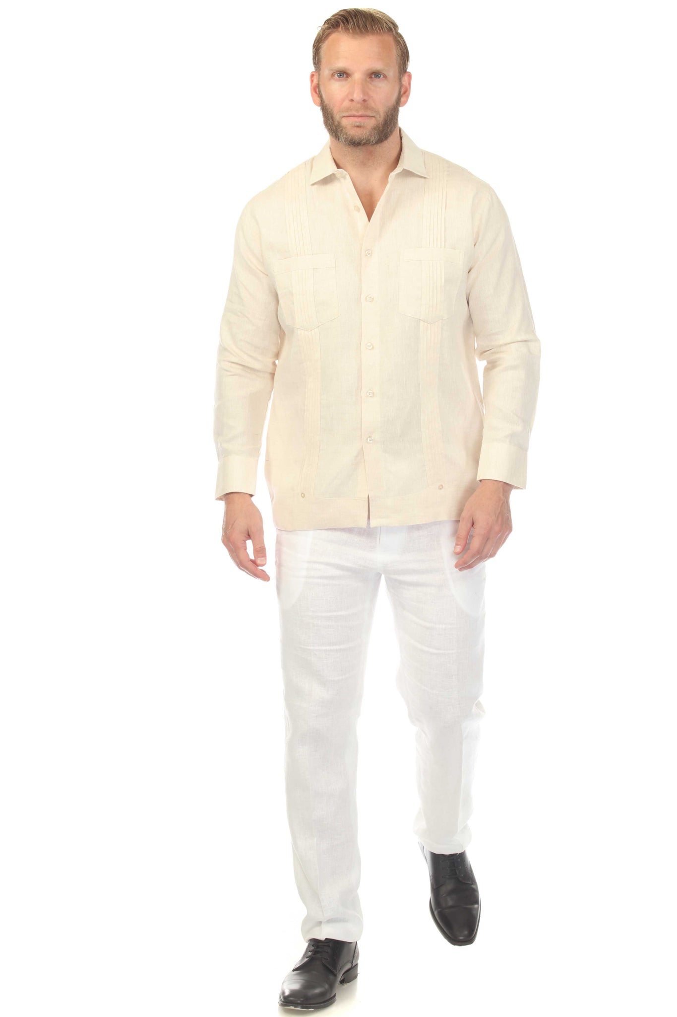 Men's 100% Linen Two Pocket Guayabera Shirt Tuxedo Look