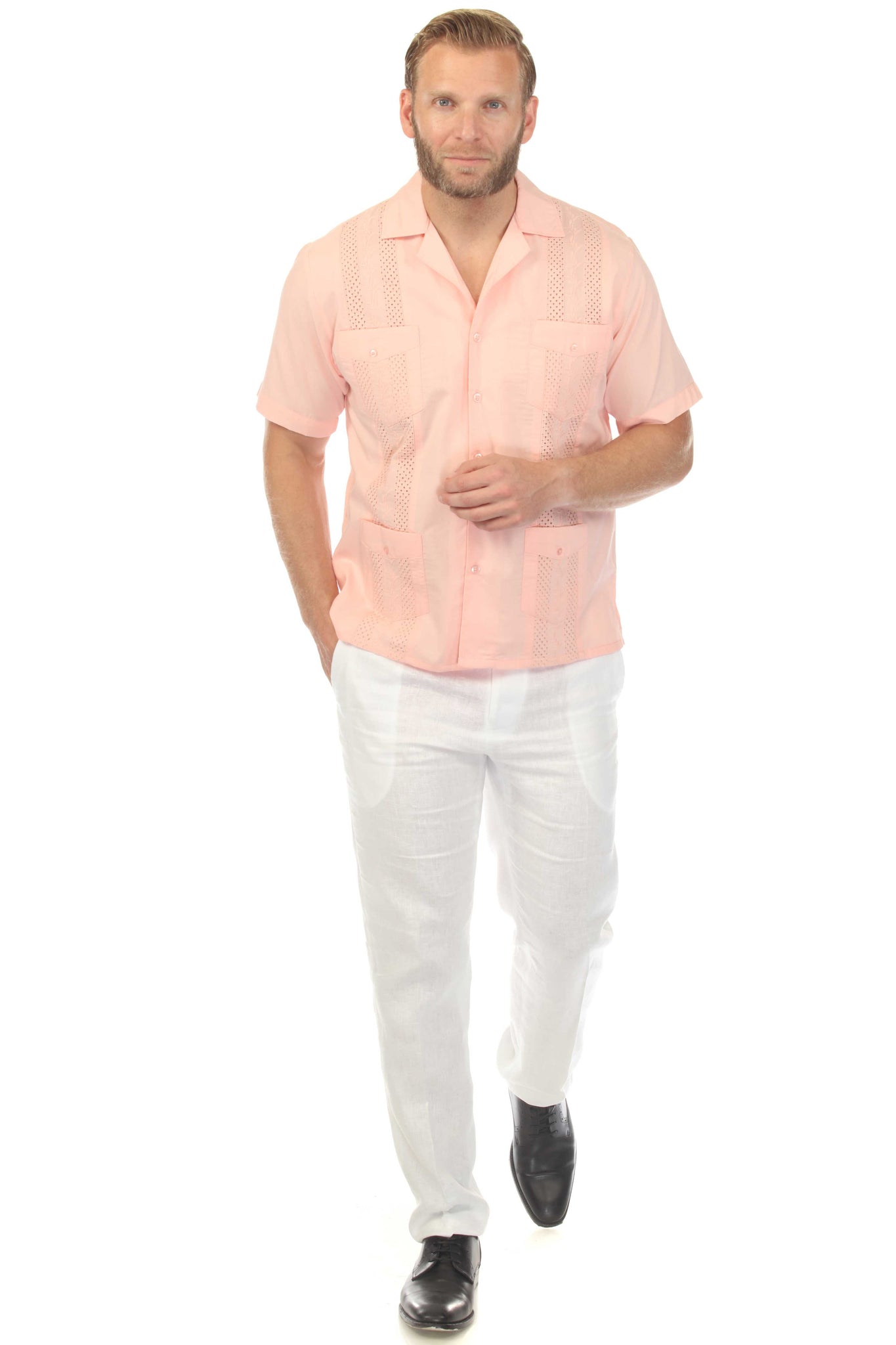 New Mojito Guayabera – Cropped 4-pocket front with classic embroidery accents
