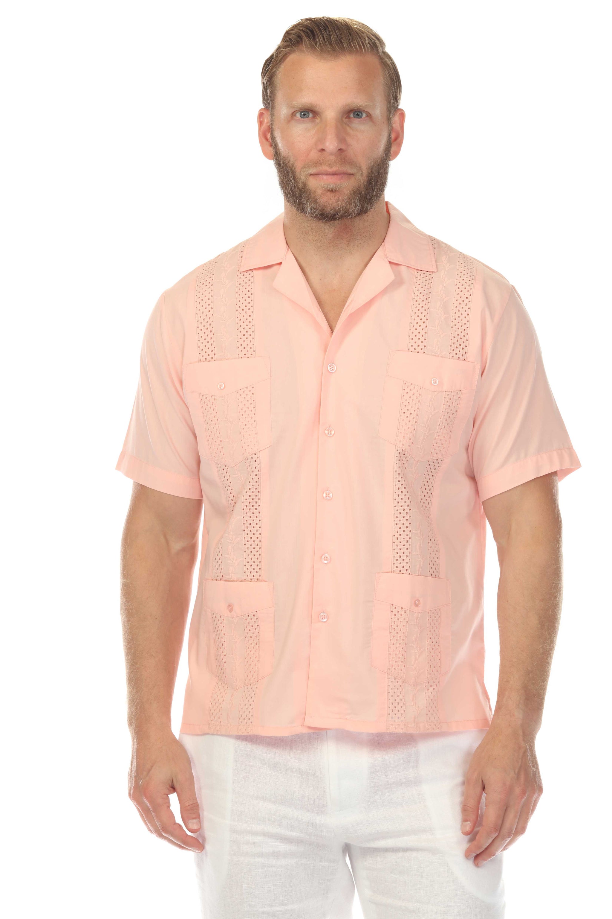 Men's Cropped Four-Pocket Stylish Guayabera Shirt with Embroidery