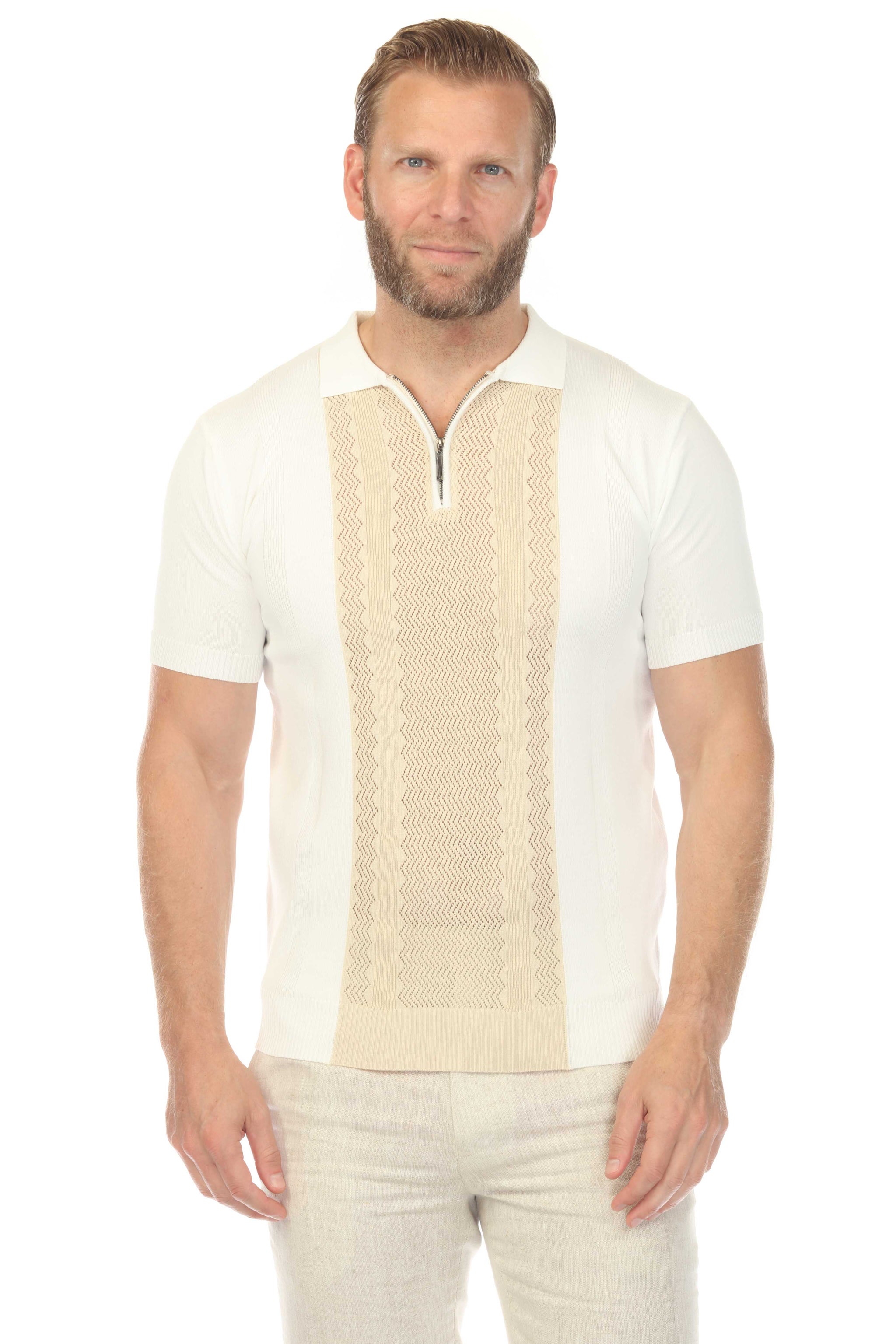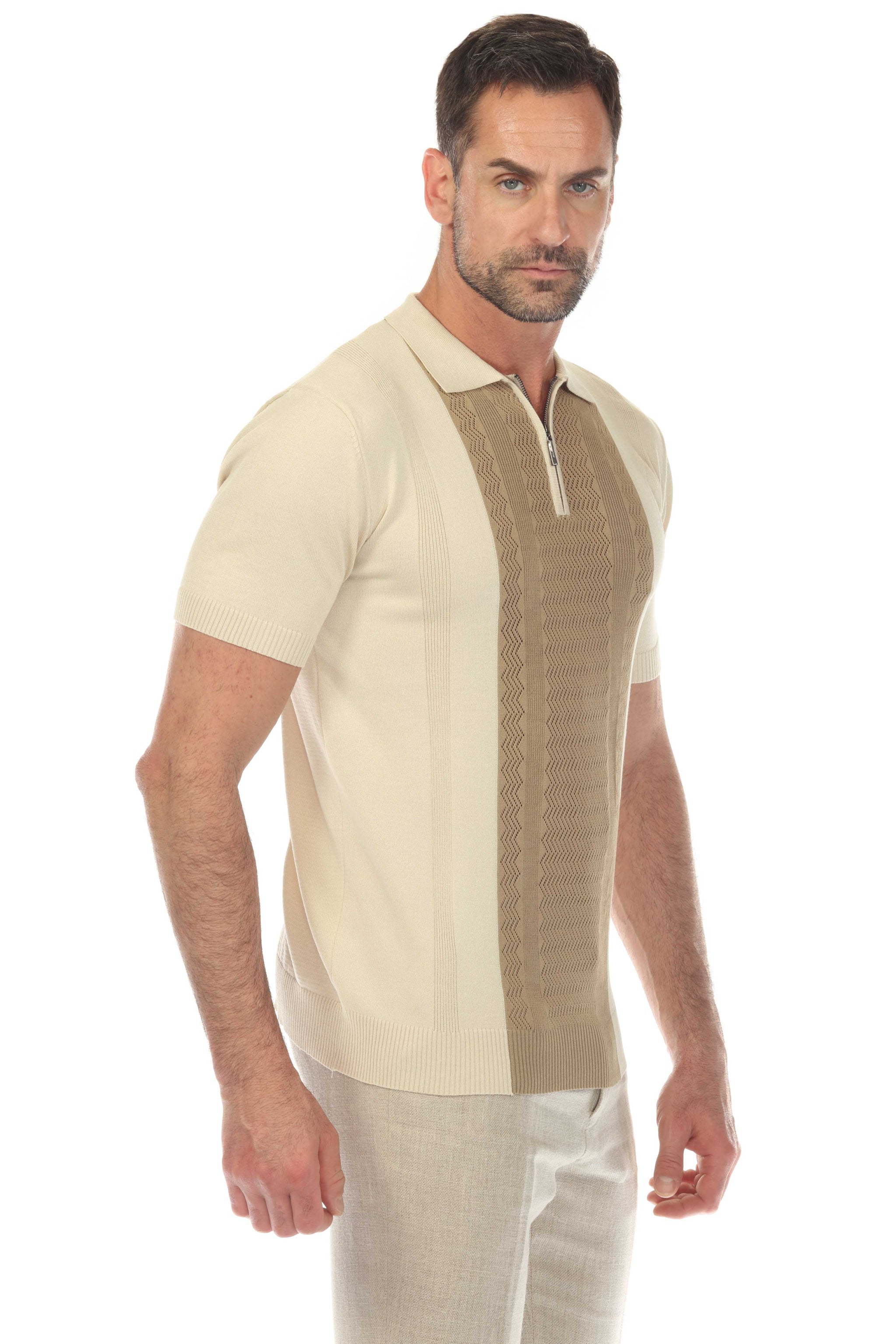 Men's Stylish Premium Knit Textured Polo Shirt with Stripe Accents
