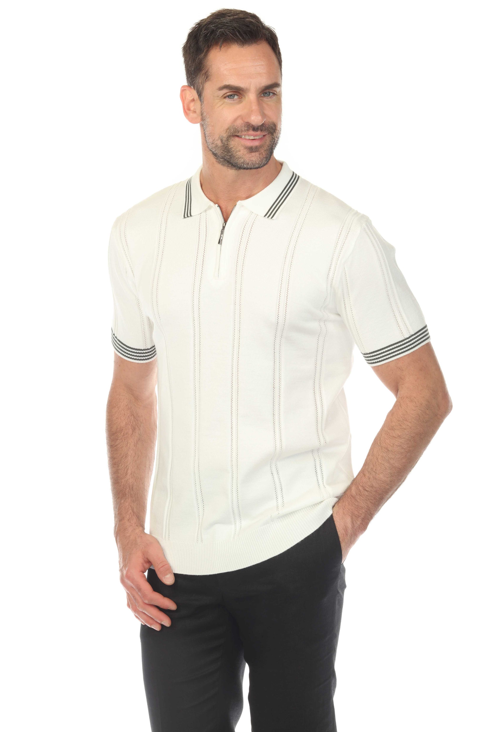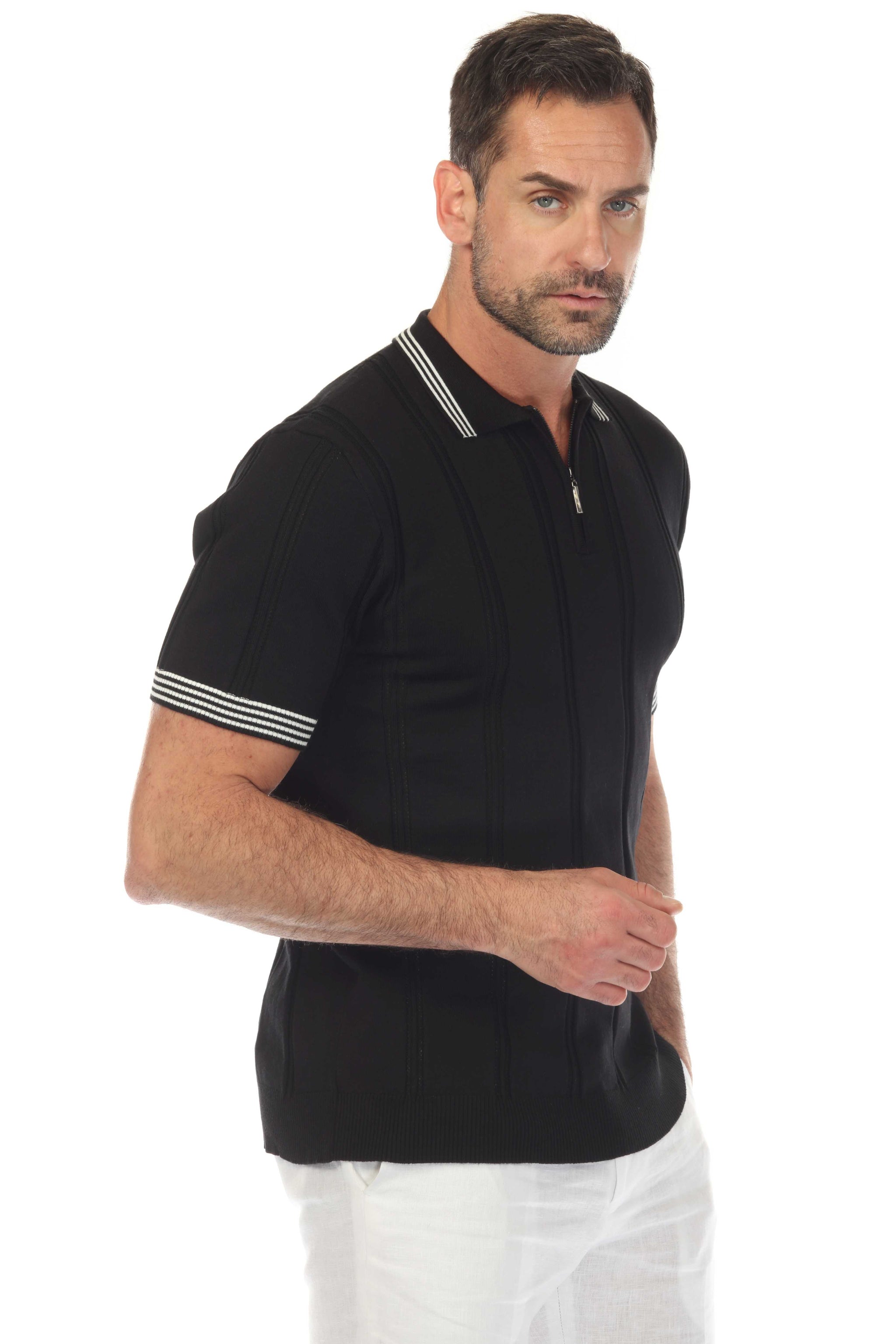Men's Stylish Premium Knit Textured Polo Shirt with Stripe Accents