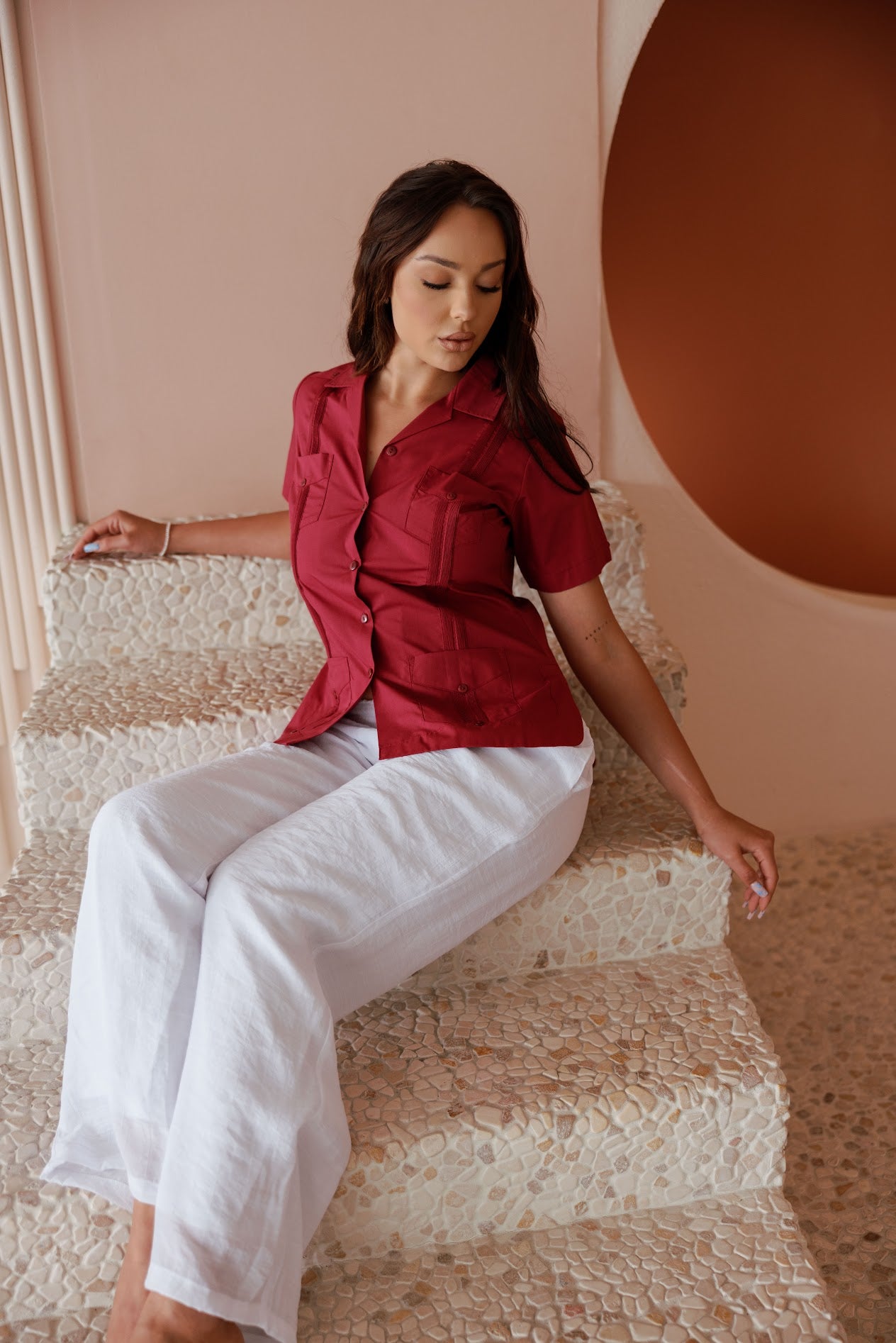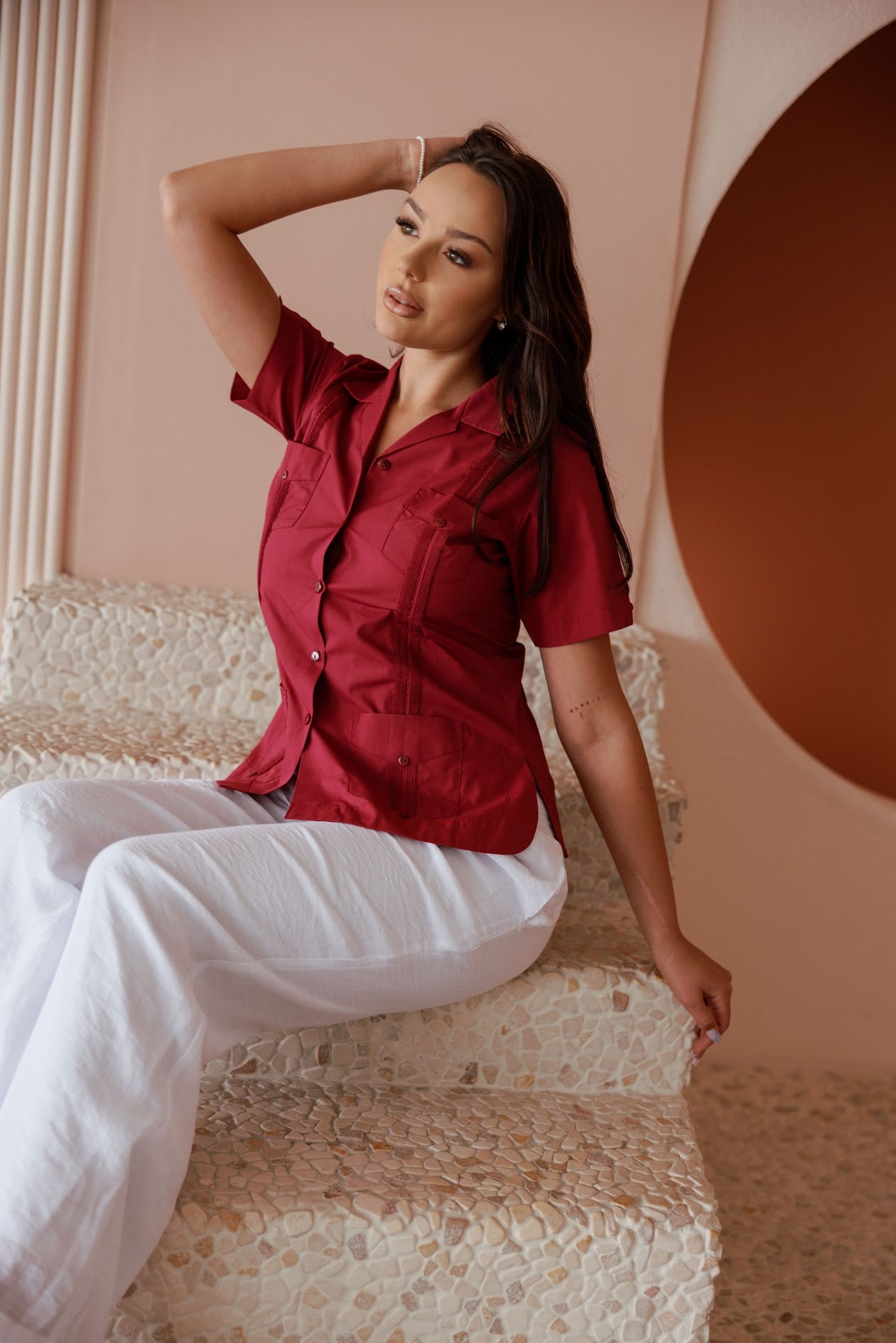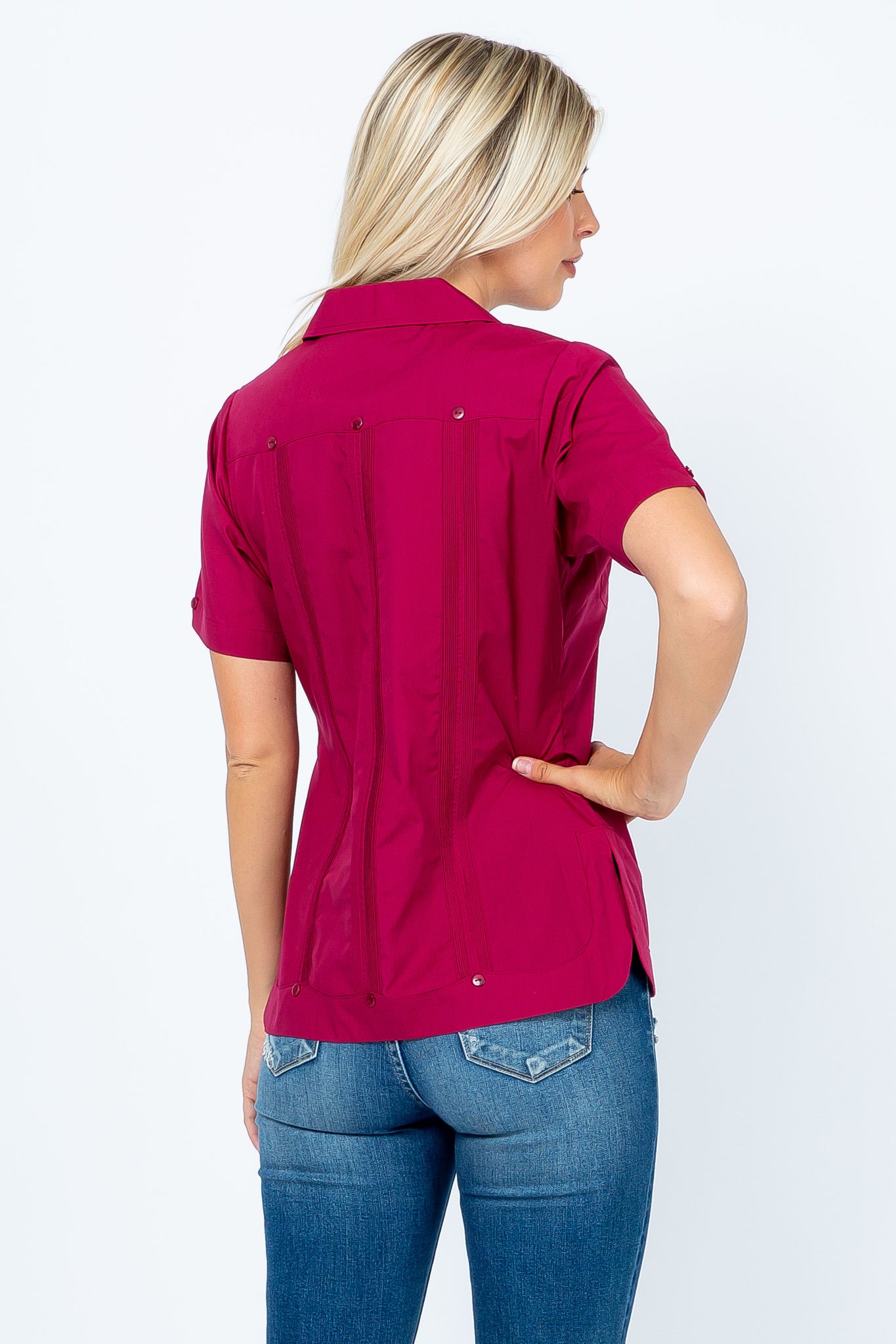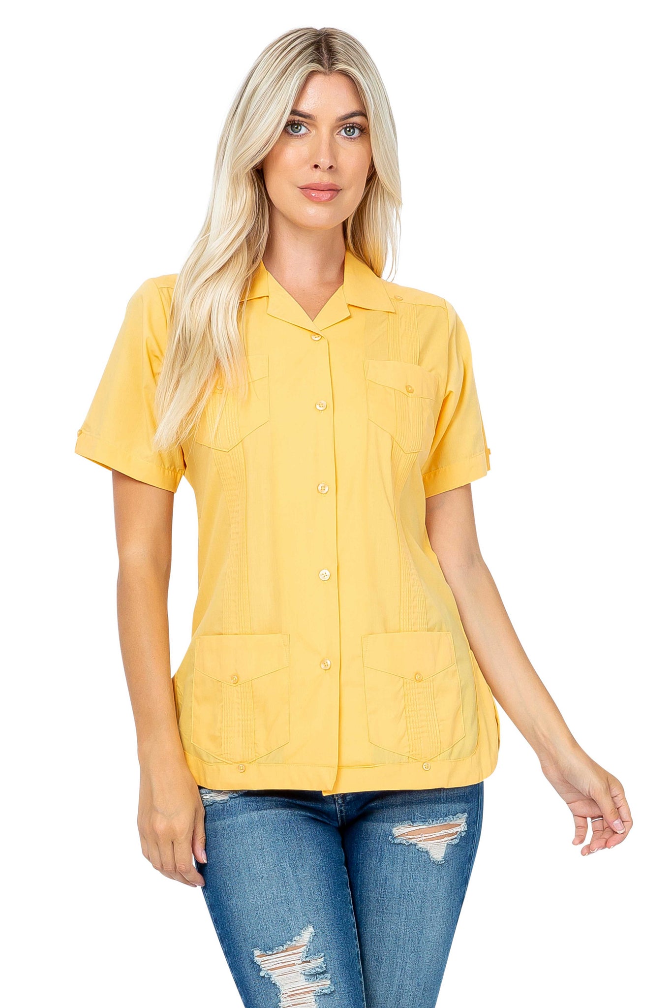 Women's all-time bestseller, this women’s guayabera shirt is available in sizes XS to 3X for an inclusive, flattering fit. Designed with authentic 4-pocket styling and made from a soft, breathable cotton-blend fabric, it delivers timeless elegance with everyday comfort.