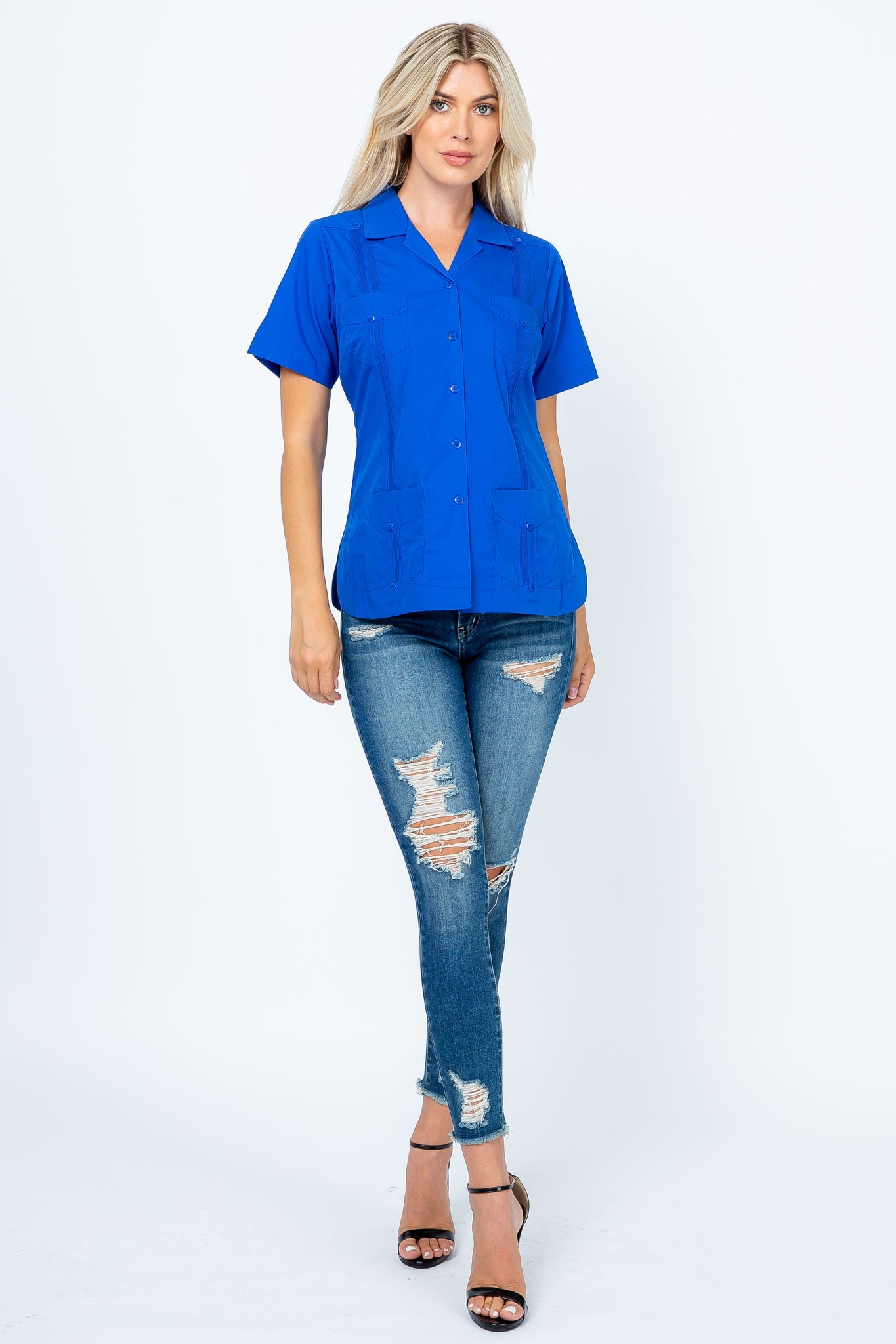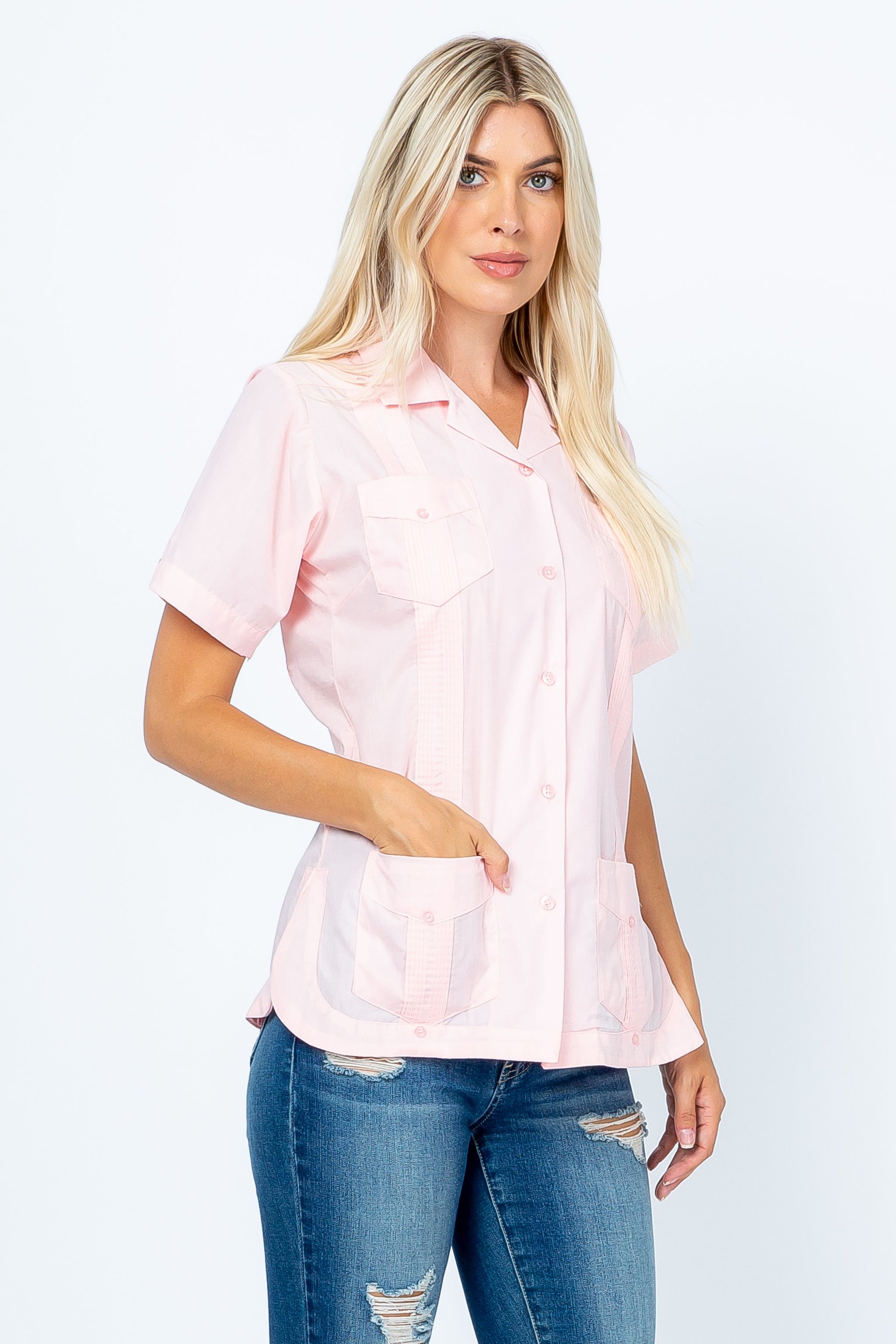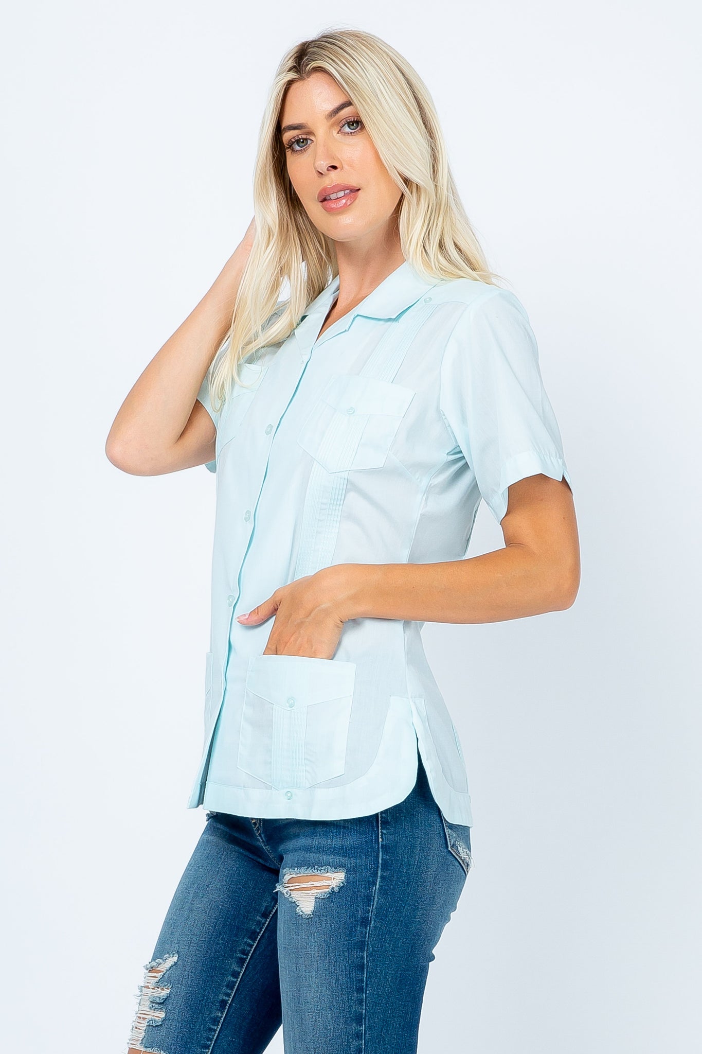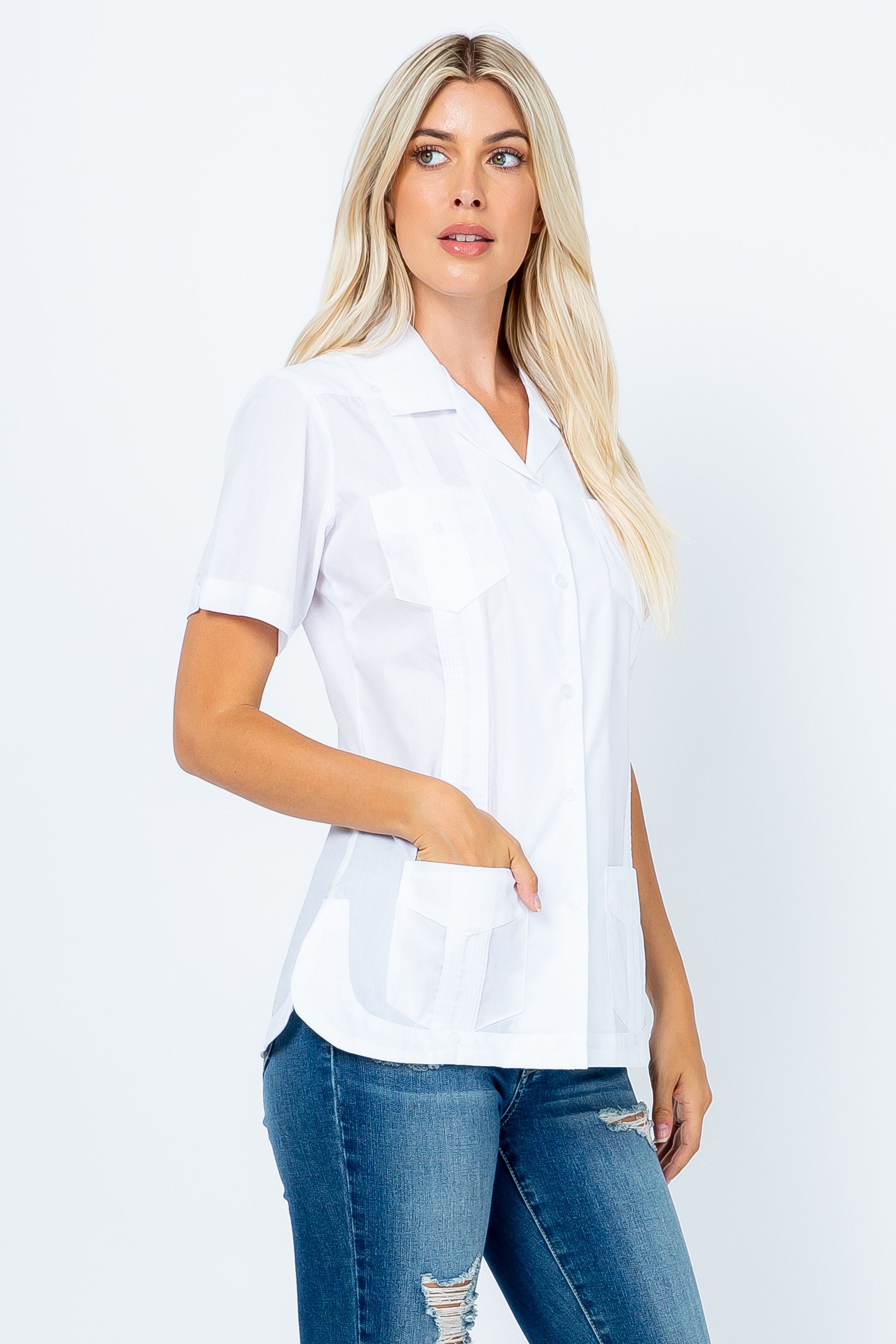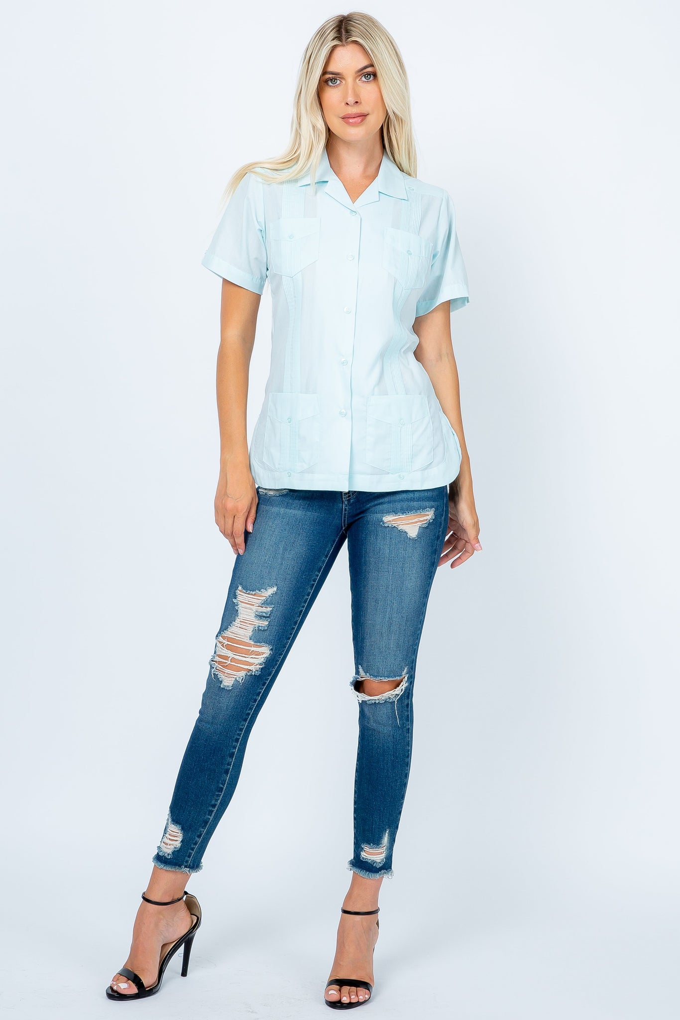 Mojito Women's Cotton Blend Short Sleeve Guayabera 4-Pocket Design