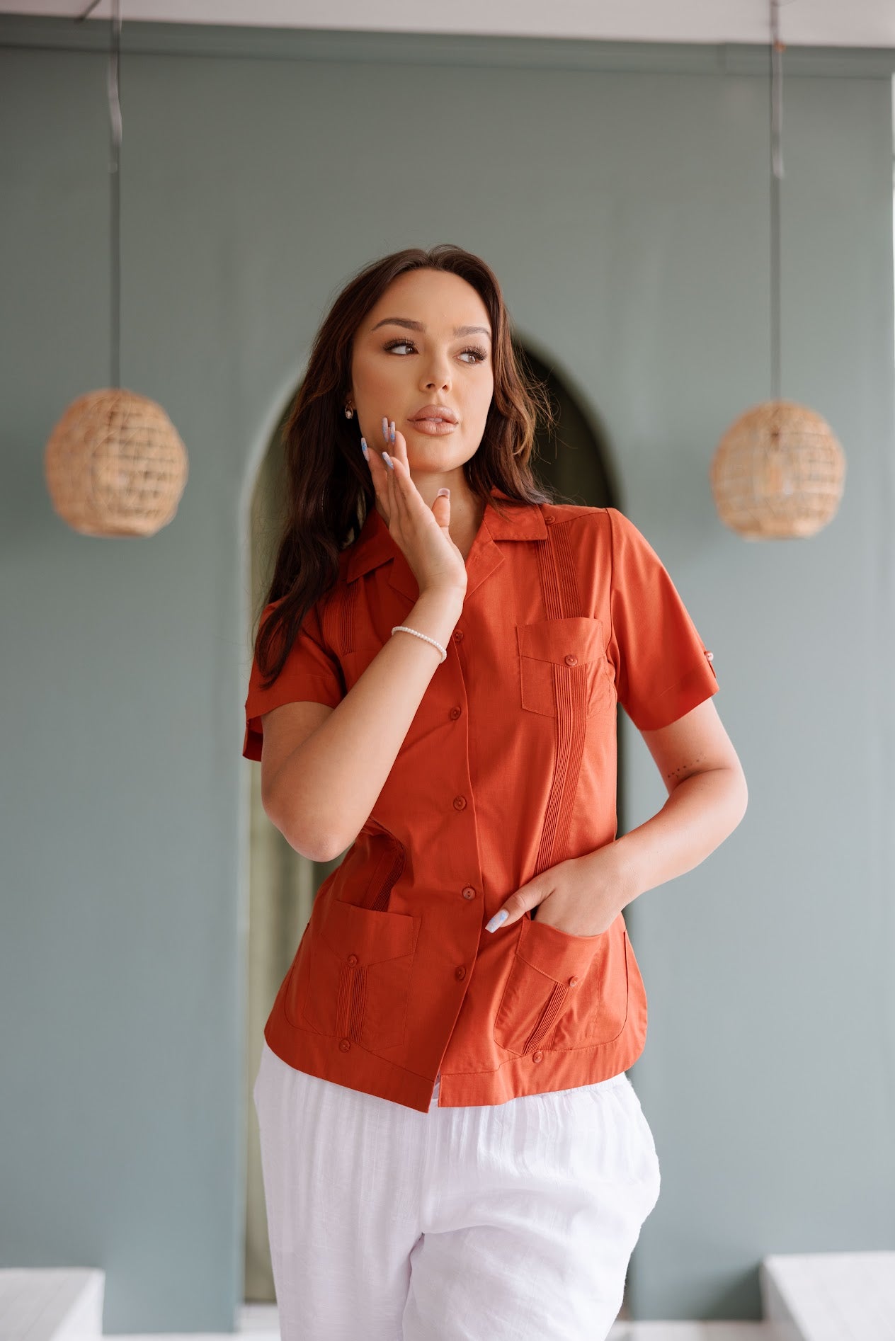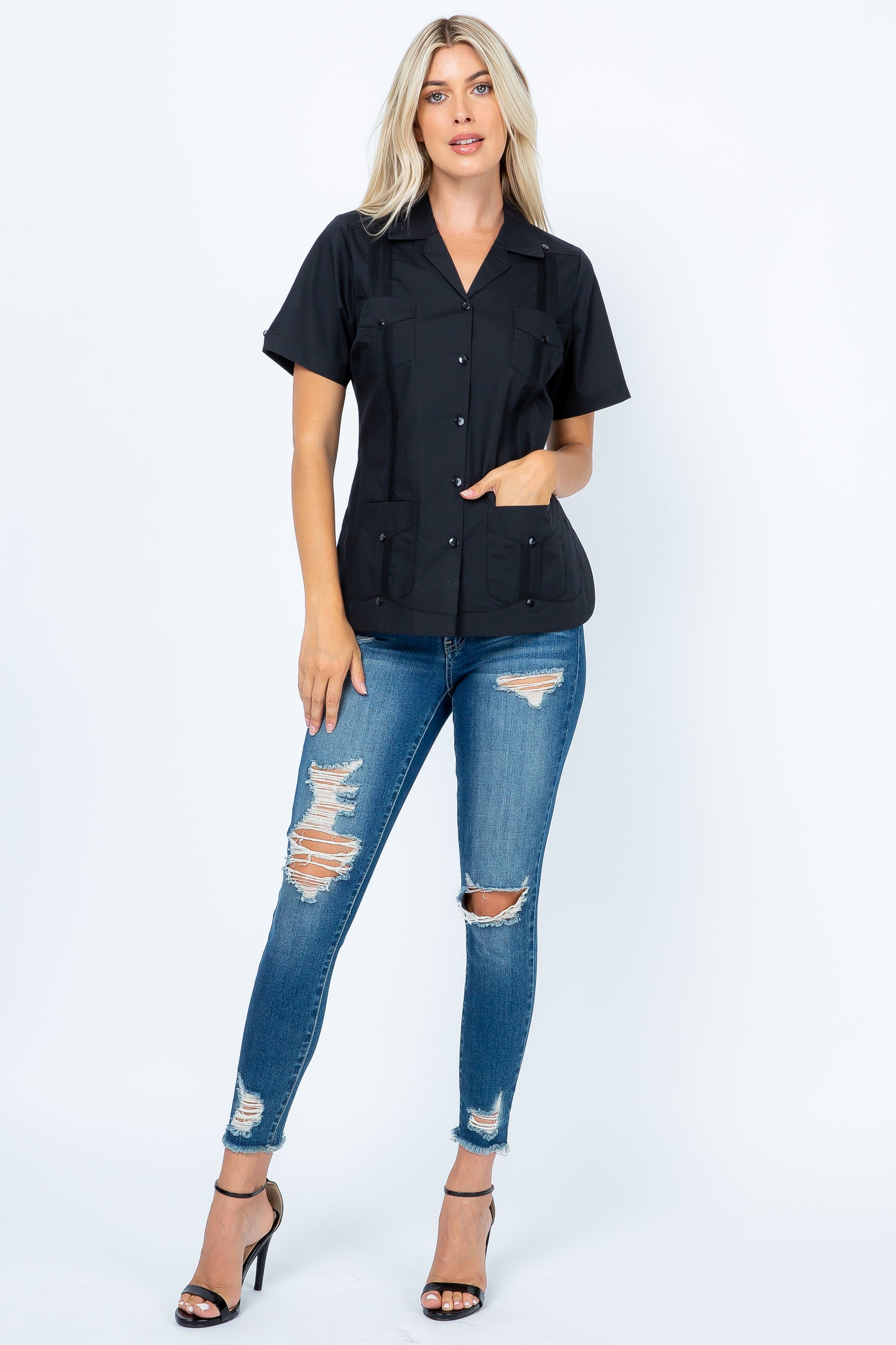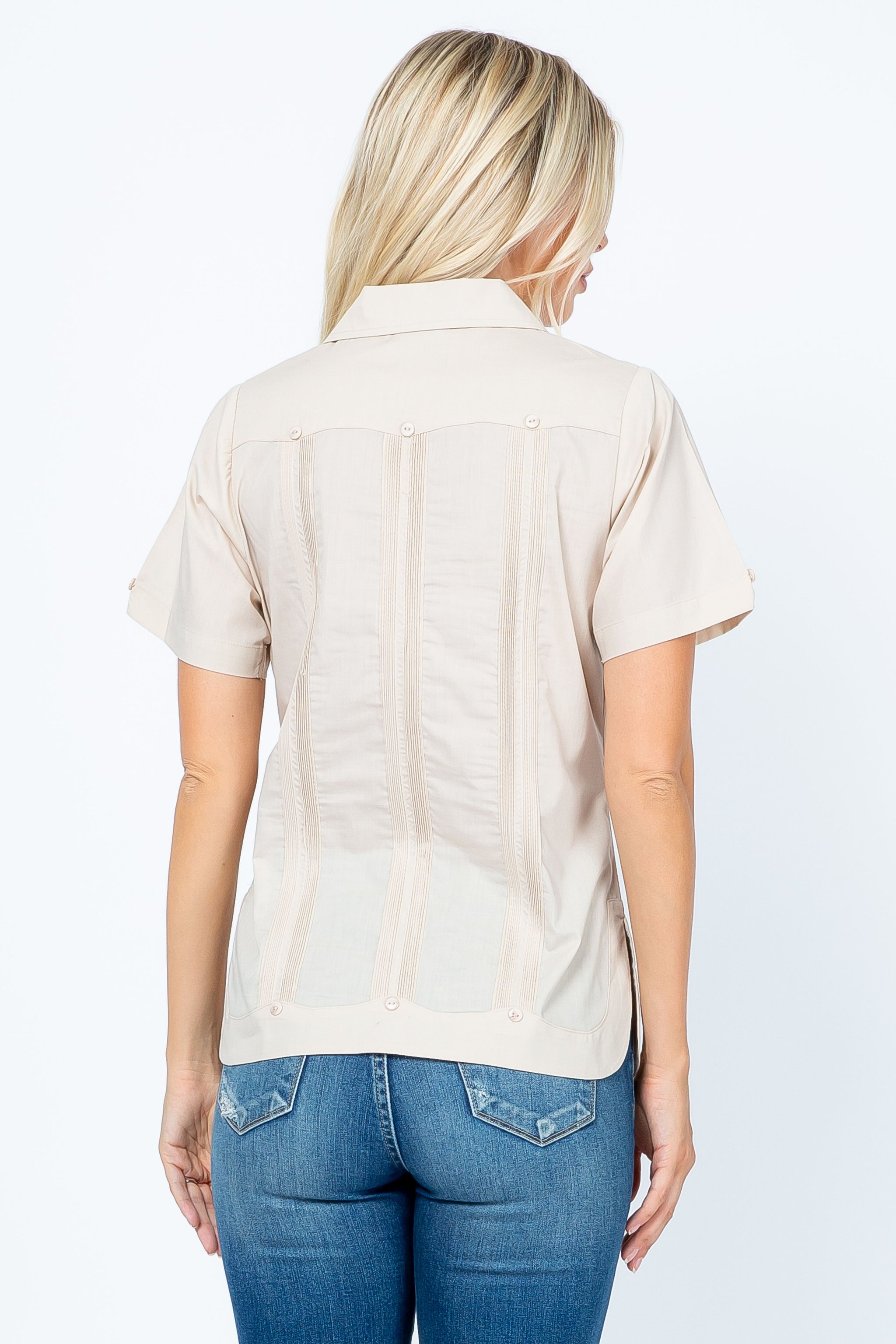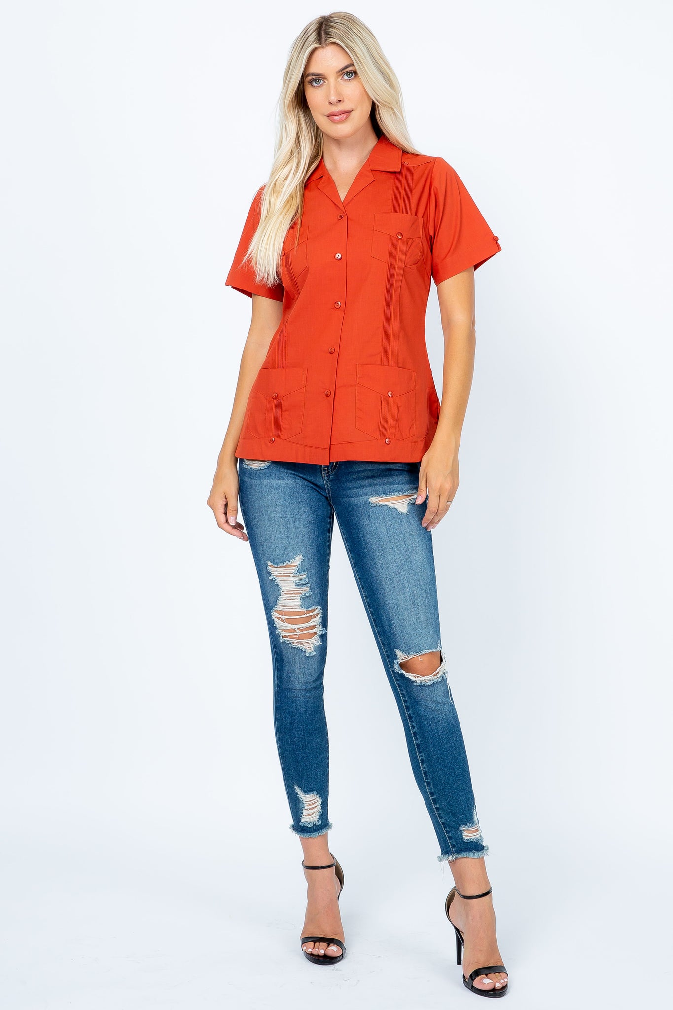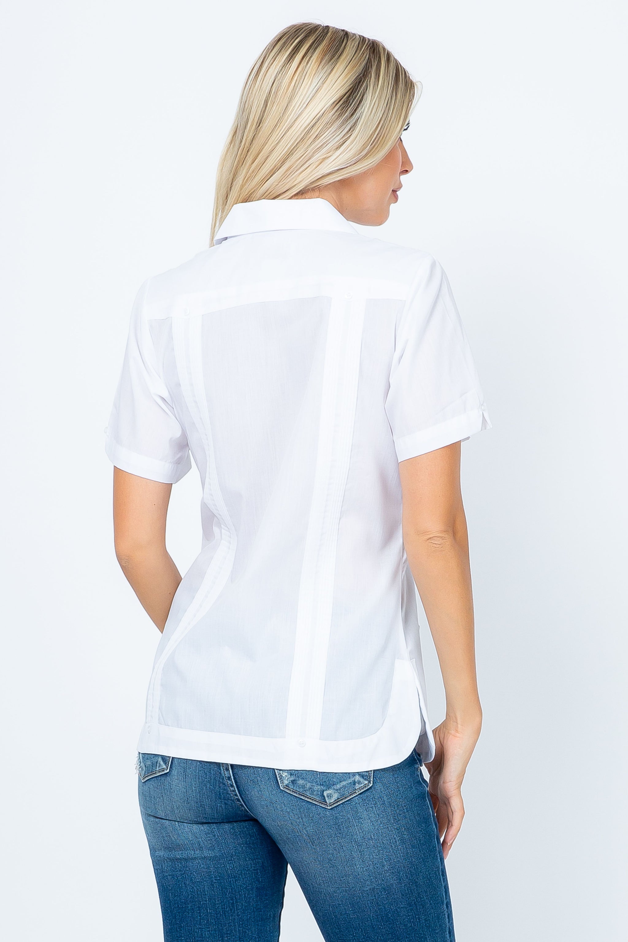 Mojito Women's Cotton Blend Short Sleeve Guayabera 4-Pocket Design